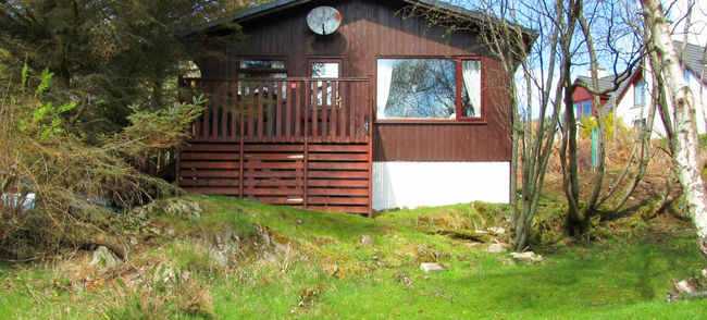 ‘Linga’ is a timber-built chalet occupying an elevated and secluded position overlooking the lovely bay of Inverkirkaig near Lochinver. From the lounge windows, one looks across the bay towards a wooded hillside and the mouth of the River Kirkaig, famous for its salmon fishing. The ebbing and flowing of the tides provide for a constantly changing scene, and, on sunny evenings, whatever the season, the setting sun transforms the bay and shoreline with a gorgeous warm light which is almost magical.
